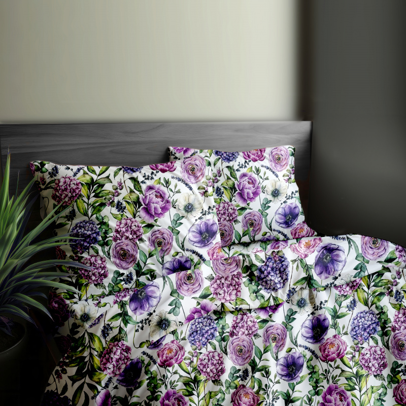 Ervi Bavlněné Saténové povlečení DELUXE - Fialová zahrada