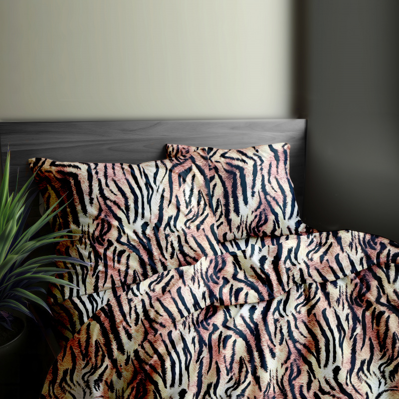 Povlečení Ervi DELUXE – Elegance Tygří je výjimečným doplňkem ložnice, který v sobě spojuje exotický styl, přírodní motiv a luxusní materiál. Tygří vzor dodává interiéru dynamiku a osobitost, zatímco přírodní barevné tóny působí uklidňujícím dojmem. Povrch z bavlněného saténu je hladký, jemně lesklý a příjemný na dotek, což zajišťuje pohodlí během spánku i estetický zážitek při pohledu.