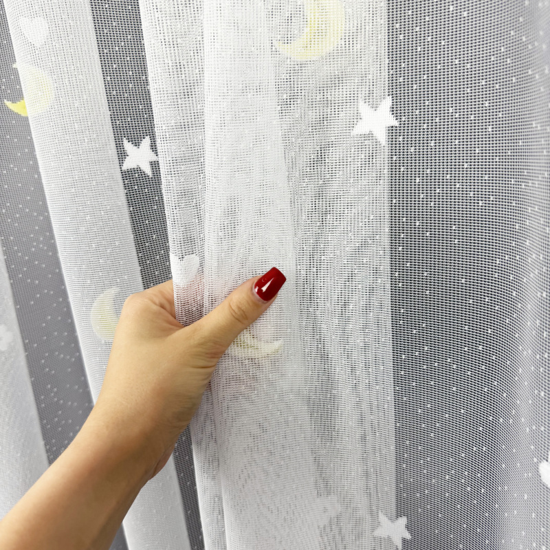 Žakárová dětská záclona v čistě bílé barvě je navržena tak, aby jemně propouštěla světlo a zároveň dodávala dětskému pokoji vzdušný a harmonický vzhled. Mírně průsvitný materiál vytváří příjemnou atmosféru plnou světla a prostoru, což pomáhá opticky zvětšit pokoj. Horní rovné zakončení usnadňuje zavěšení pomocí řasící pásky nebo na háčky podle potřeby. Díky klasickému a jednoduchému designu se záclona hodí do různých stylů dětských interiérů a poskytuje praktickou i estetickou funkci pro každodenní použití.