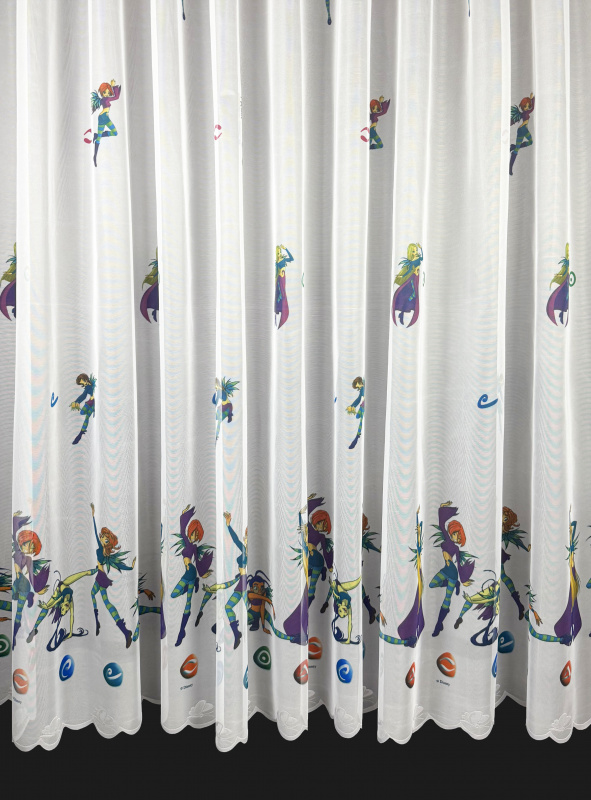 Ervi dětská žakárová záclona ve výšce 160, 170 nebo 180 cm s barevným vzorem oblíbených pohádkových postaviček.