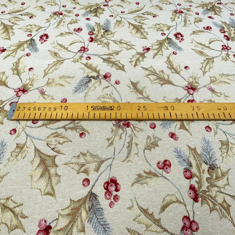 Tato gobelínová látka je perfektním spojením elegance a vánočního ducha. S nádherným lesním vzorem na krémovém podkladu, přináší do interiéru slavnostní atmosféru.