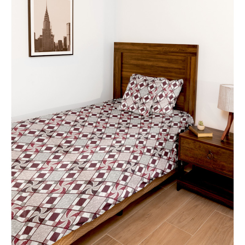 Přehoz na dvolůžko je s prošitím do pruhů. Lícová strana látka je sešita ze 2 pruhů látky