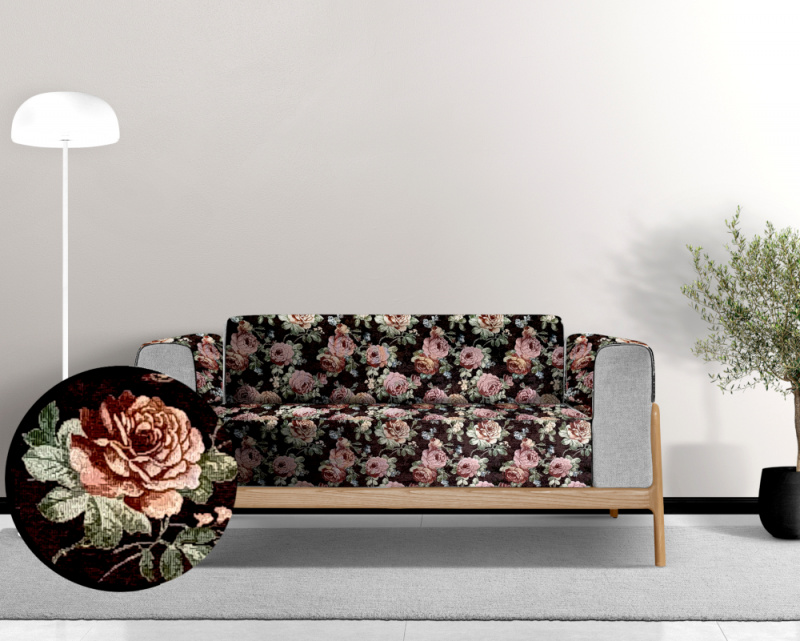 Gobelínový přehoz na sedačku/postel - Gold černý je elegantní přehoz s bohatým květinovým vzorem. Tento přehoz je ideální pro použití jak na sedačce, tak i na posteli, a přidává interiéru nádech elegance a stylu.