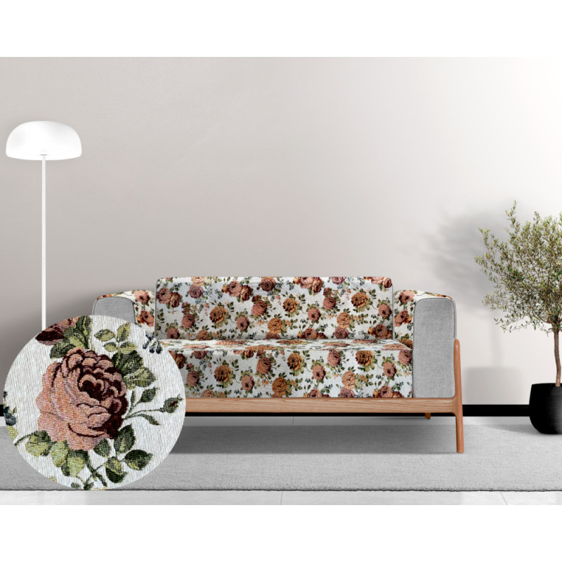 Gobelínový přehoz - Gold cream je elegantní a stylový přehoz vhodný pro sedačku nebo postel. Přehoz je vyroben z kvalitního materiálu, který je trvanlivý a luxusní na pohled. Design přehozu je zdobený květinovým vzorem s růžemi v odstínech zlaté a krémové, což mu dodává romantický a elegantní vzhled. Tento přehoz nejen, že výrazně oživí a zútulní váš interiér, ale také přináší pocit luxusu a komfortu. Je ideální pro různá použití - můžete jej použít na sedačku v obývacím pokoji, kde vytvoří útulný a harmonický prostor, nebo na postel v ložnici, kde přidá na pohodlí a estetickém dojmu.