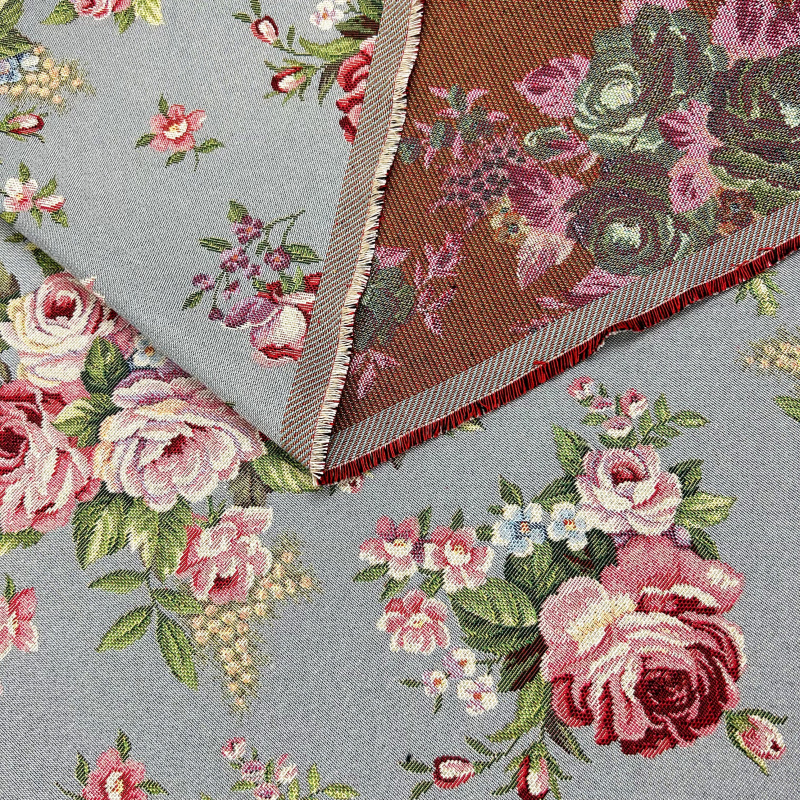Ervi Gobelínový ubrus na stůl obdélníkový - Jemné růže na šedo-modrém