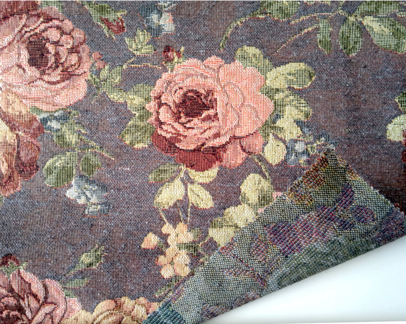 Gobelínový termo závěs - Gold růže šedohnědý je dekorativní a funkční závěs s gobelínovým vzorem, který dodá vašemu interiéru nádech elegance a útulnosti. Na šedohnědém podkladu jsou vyobrazeny růže a další květiny v odstínech zlaté, růžové a zelené. Tento závěs je navržen tak, aby pokrýval celou výšku okna a zajistil tepelnou izolaci místnosti.