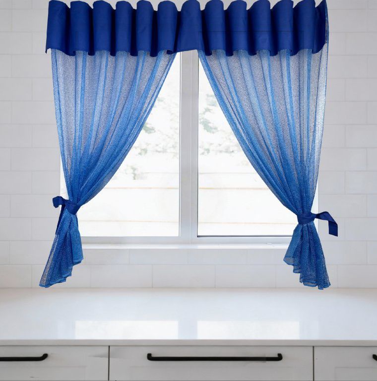 Stylová hotová dekorační sada záclon, ideální pro kuchyň nebo jídelní kout. Sada se skládá ze dvou bočních lehkých záclon a středové jemně vzorované záclony. Dekorativní lambrekýn je pevně přišitý k horní části bočních záclon, čímž tvoří jeden kompaktní celek a zajišťuje upravený a elegantní vzhled okna.