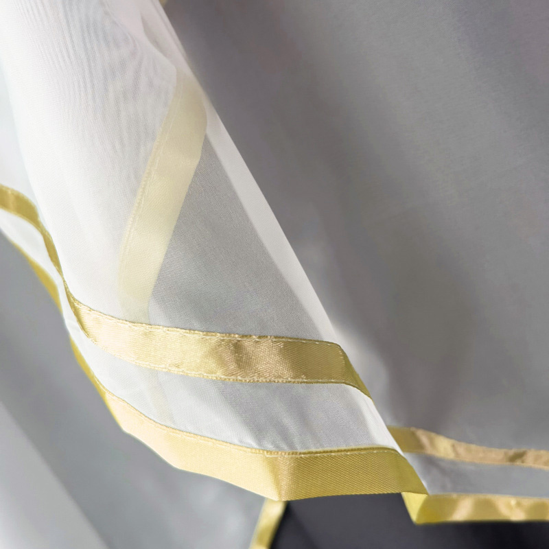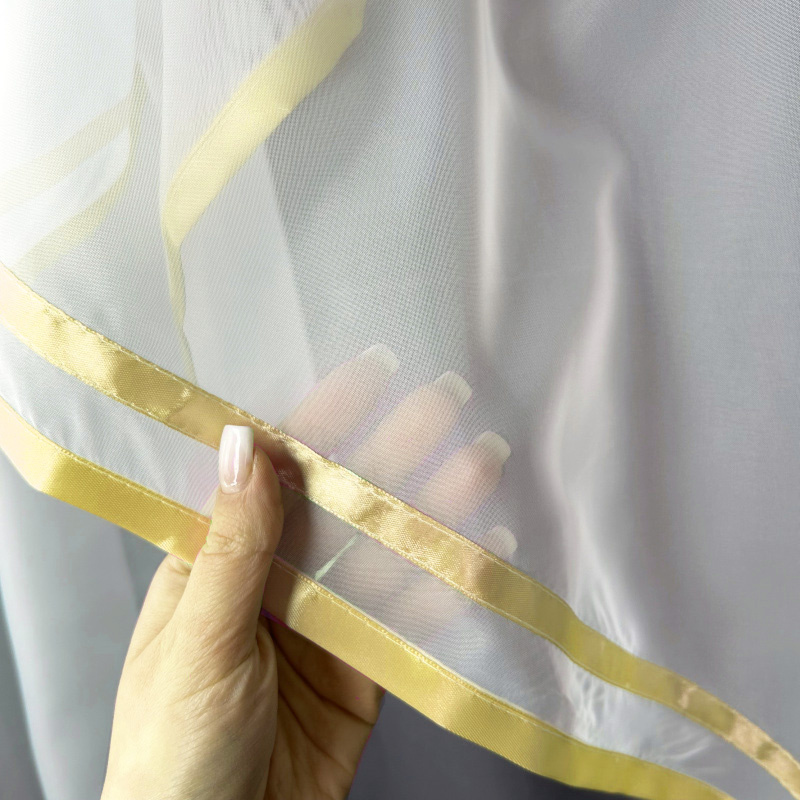 Kusová záclona Ella je navržena tak, aby byla snadno instalovatelná a zároveň esteticky přitažlivá. Kraje jsou obšité jemnou saténovou stužkou, která zácloně dodává luxusní vzhled. Díky kvalitnímu zpracování a pevným okrajům si záclona zachovává svůj tvar a eleganci po dlouhou dobu.