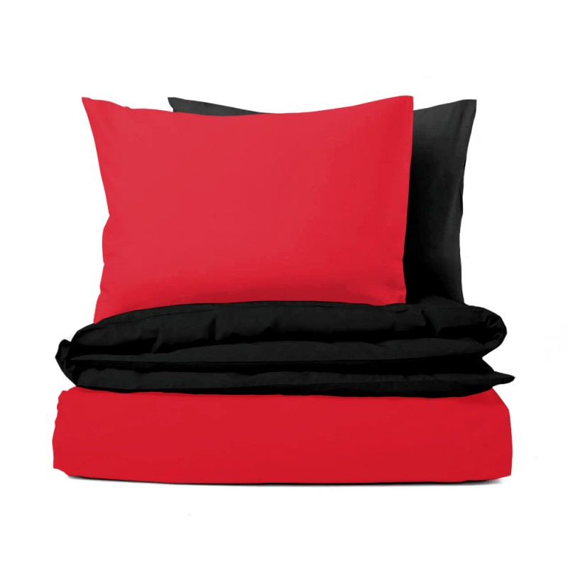 Povlečení Červené/Černé je výrazným spojením vášně a elegance. Z jedné strany září intenzivní červenou barvou, která dodává ložnici energii, teplo a romantiku, z druhé strany působí černá jako tichá síla – hluboká, klidná a sofistikovaná. Oboustranné provedení umožňuje snadnou proměnu atmosféry podle nálady – od dramatického výrazu po decentní minimalismus.