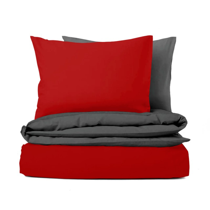 Povlečení Červené/Šedé je výraznou kombinací energie a klidu. Z jedné strany září sytou červenou barvou, která dodává ložnici vášeň, teplo a živost, z druhé strany působí šedá jako vyrovnaný protipól – decentní, elegantní a harmonická. Oboustranné provedení umožňuje snadnou proměnu atmosféry podle nálady – od dramatického výrazu po jemnou rovnováhu.