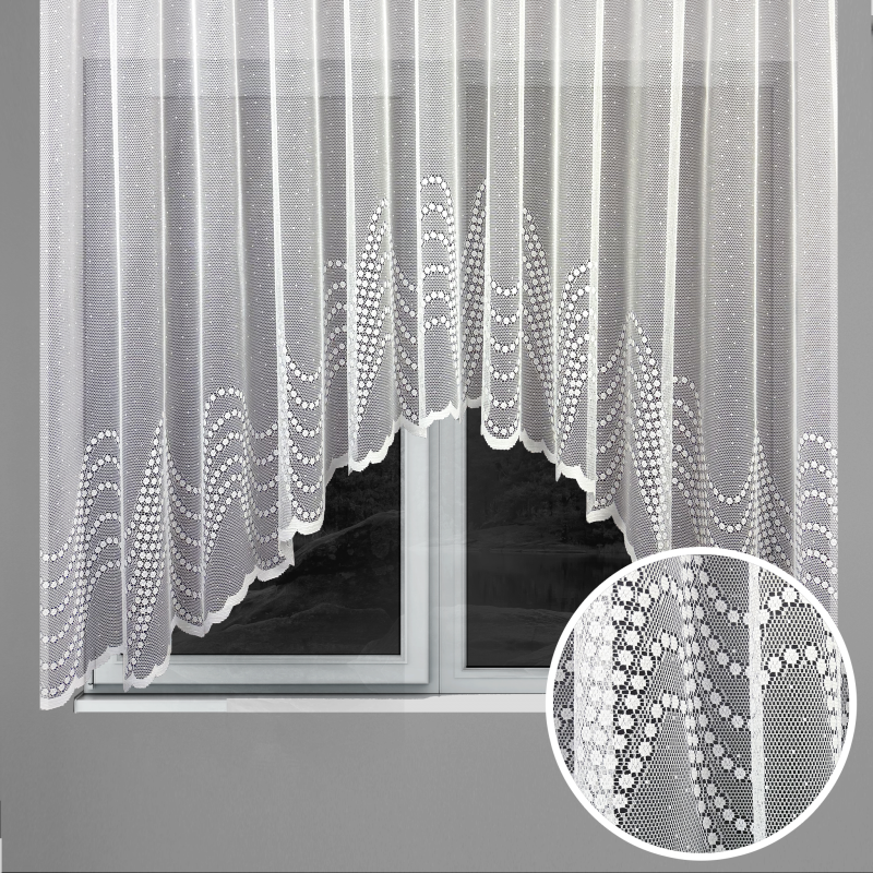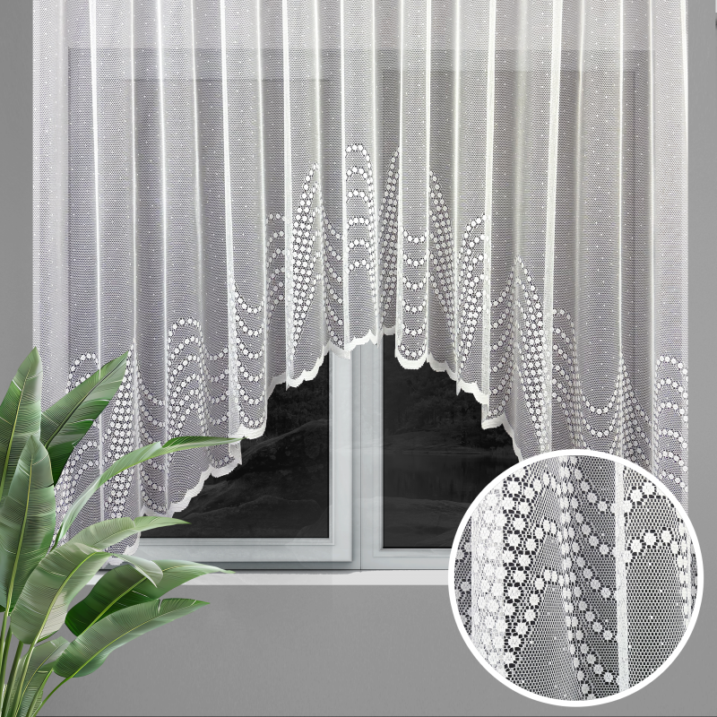 Tato elegantní oblouková záclona s jemným žakárovým vzorem v bílé barvě je ideální volbou pro zútulnění vašeho domova. Díky hotovému provedení s našitou řasící páskou ji stačí jednoduše zavěsit – bez šití, bez úprav. Obloukový tvar krásně rámuje okno a dodává místnosti dekorativní nádech. Jemná struktura látky propouští dostatek světla, zároveň však poskytuje příjemné soukromí. Záclona se hodí do obývacího pokoje, ložnice, kuchyně i dalších prostor, kde chcete spojit funkčnost s elegancí. Skvělý doplněk pro moderní i klasický interiér, který působí svěže a vzdušně.