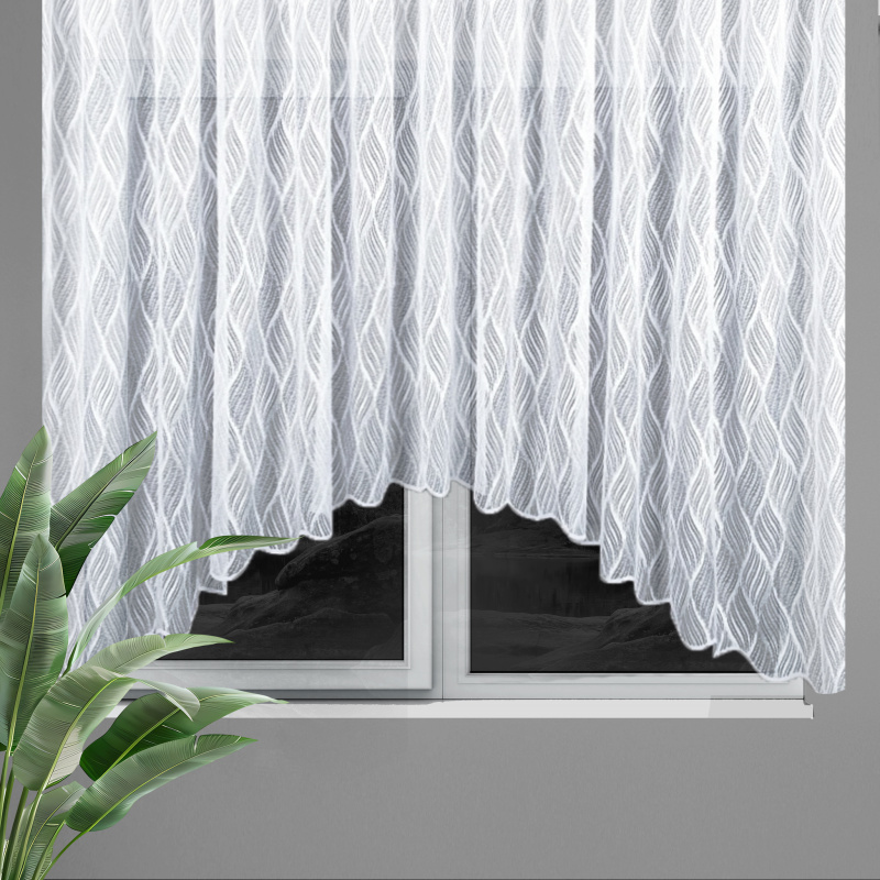 Oblouková hotová záclona s řasící páskou - 7171 je elegantním a praktickým doplňkem pro váš domov. Vyrobena z kvalitního bílého materiálu, záclona je zdobena jemným vzorem, který dodává oknům sofistikovaný a stylový vzhled. Obloukový spodní okraj přidává romantický prvek a díky řasící pásce je její instalace snadná a umožňuje rovnoměrné nařasení. Tato záclona je ideální volbou pro vytvoření příjemné atmosféry v obývacím pokoji, ložnici nebo kuchyni.