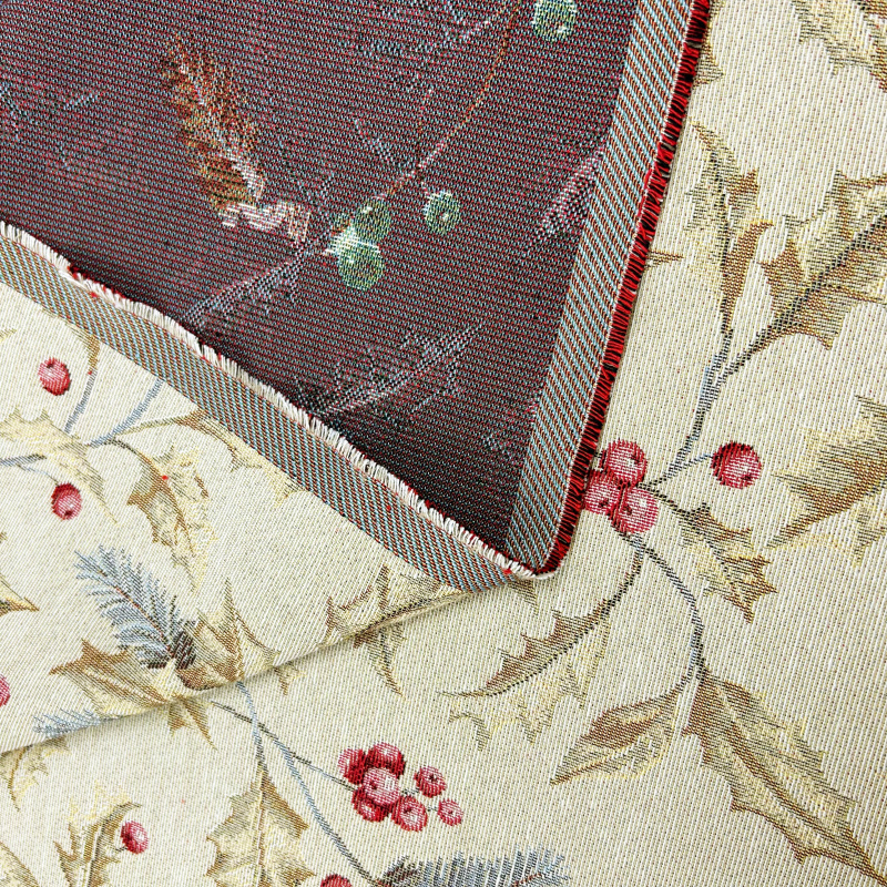 Barevné provedení je navrženo tak, aby odolalo vyblednutí, udrželo si jas i po dlouhém používání. Látka je ideální pro sváteční dekorace, například ubrusy, běhouny na stůl, prostírání a závěsy, přičemž dodává interiéru nádech luxusu a pohodlí.