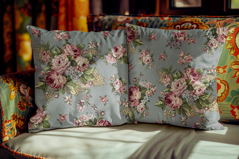 Ervi povlak na polštář Gobelínový - Jemné růže na šedo-modrém