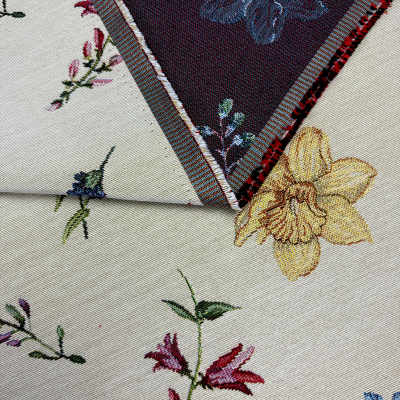 Barevné provedení je navrženo tak, aby odolalo vyblednutí, udrželo si jas i po dlouhém používání. Látka je ideální pro dekorace, například ubrusy, běhouny na stůl, prostírání, závěsy a dalších býtových doplňků a dekorací, přičemž dodává interiéru nádech luxusu a pohodlí.