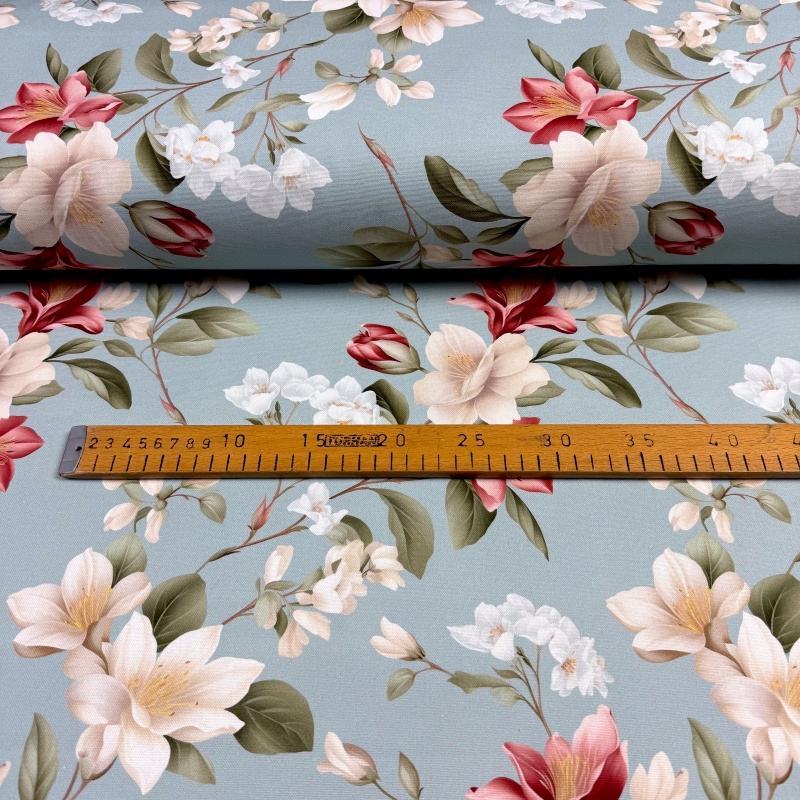 Design prostírání je inspirován jarními květy, které v pastelových odstínech bílé, krémové a červené spolu s jemnými zelenými listy na světle modrém podkladu vytvářejí svěží a elegantní vzhled. Tento doplněk je ideální pro jarní a letní stolování, přináší vašemu interiéru dotek přírody a svěžesti. Skvěle se hodí jak pro každodenní použití, tak pro slavnostní příležitosti.