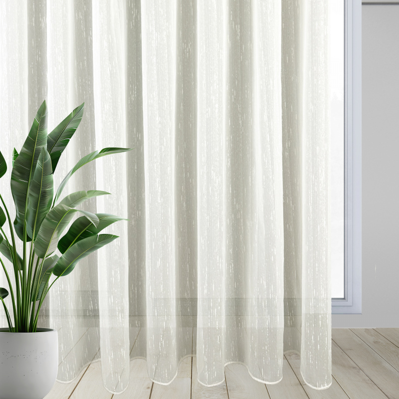 Voálová záclona Ervi ve smetanové barvě s všitým olůvkem působí jemně, vzdušně a nadčasově. Kvalitní voálová tkanina krásně propouští světlo, zároveň však poskytuje příjemné soukromí. Spodní olůvko udržuje záclonu dokonale rovnou a elegantně splývající, takže okno působí vždy upraveně. Díky univerzálnímu designu se skvěle hodí do obývacích pokojů, ložnic, kuchyní i moderních interiérů, kde dodává měkký a harmonický vzhled.