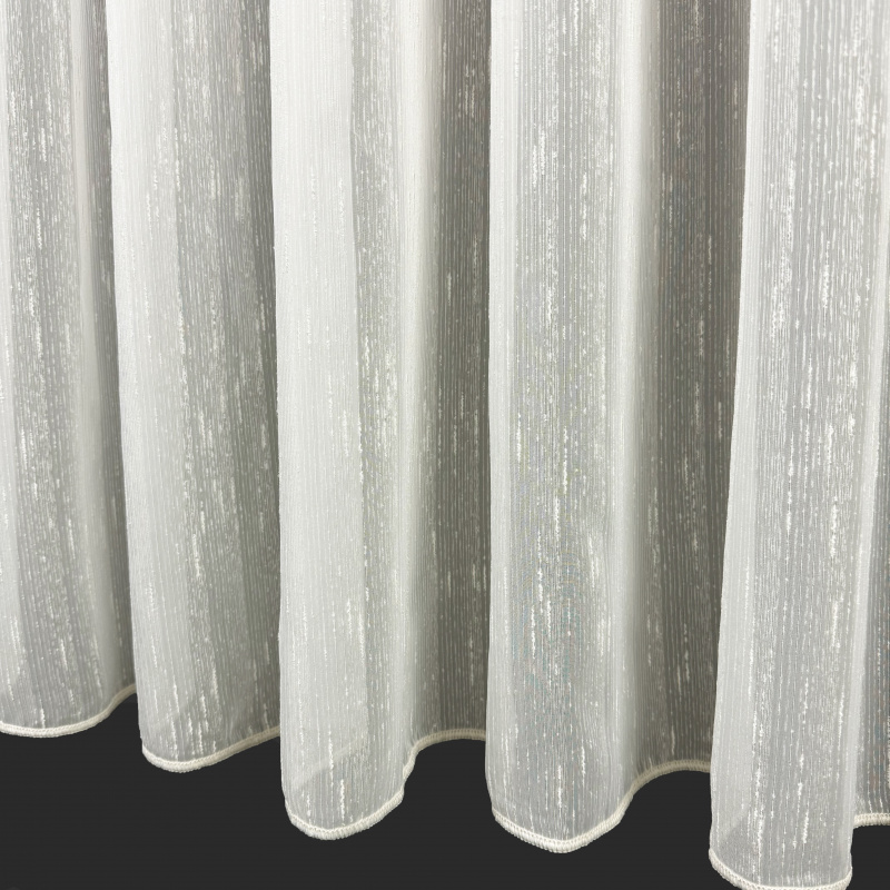Mírně průhledná voálová záclona s olůvkem v smetanové barvě vetkanou nití.