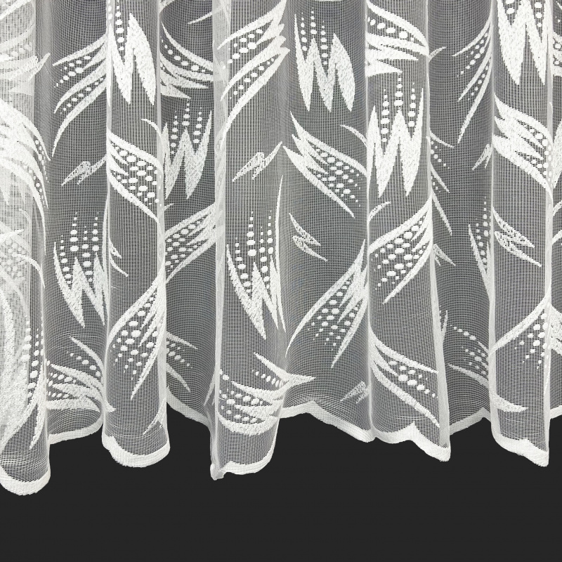 Vzor žakárové záclony Ervi bílá 18M36 je elegantní a jemný, s decentními ornamentálními prvky, které vytvářejí harmonický a vzdušný vzhled. Motivy jsou inspirovány přírodními liniemi, často ve formě stylizovaných listů nebo geometrických vzorů. Spodní lem je ozdobně zakončený, což přidává sofistikovaný detail a elegantní vzhled. Tento vzor je ideální pro klasické i moderní interiéry, kde podtrhne jemnost a útulnost prostoru.
