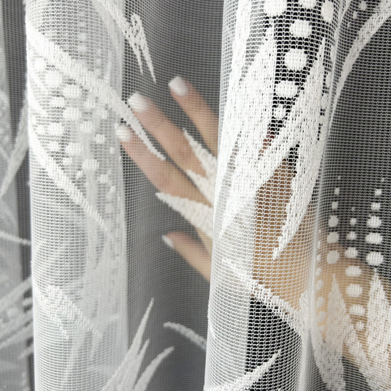 Žakárová záclona v bílé barvě se vzorem.