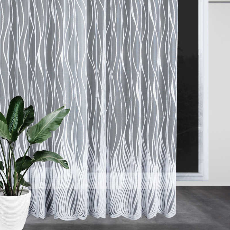 Tato záclona představuje oblíbený typ moderních záclon. Je pravděpodobně vyrobena z žakardu, což zaručuje eleganci a zároveň praktičnost. Její design s jemnými vertikálními vlnovkami dodává interiéru svěžest a styl. Díky průhlednému materiálu poskytuje dostatek světla do místnosti, přičemž zachovává soukromí.