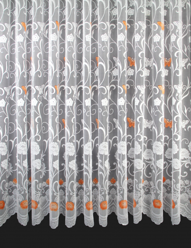 Ervi žakárová záclona bílá 7514 oranžové motýlky, metráž