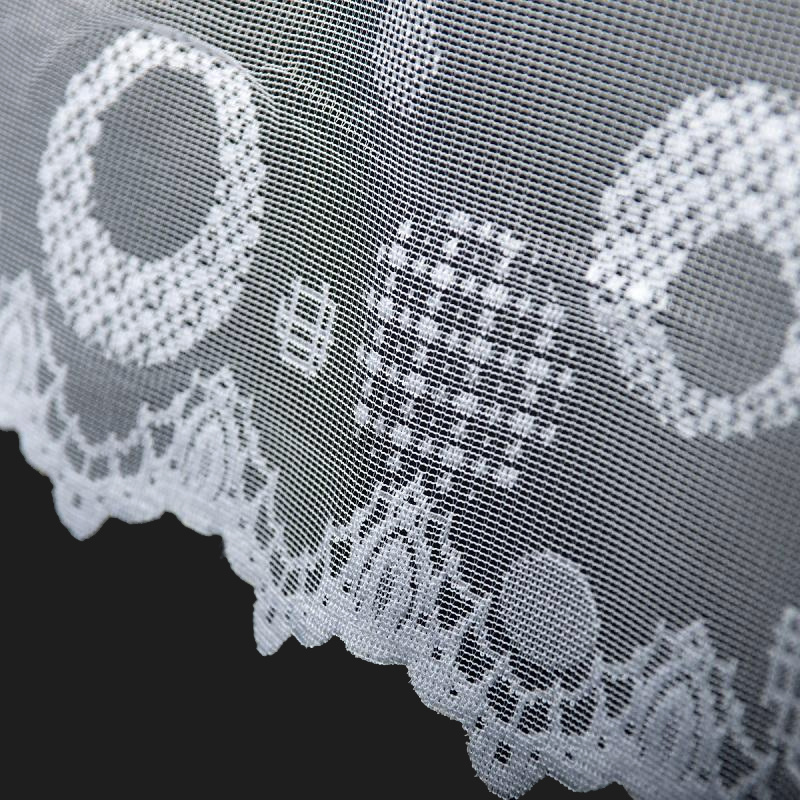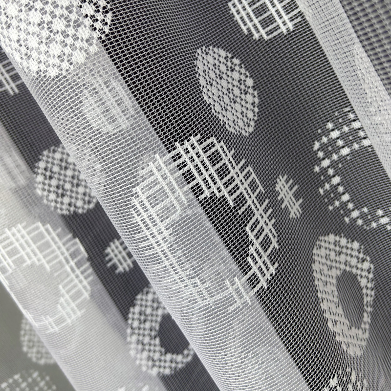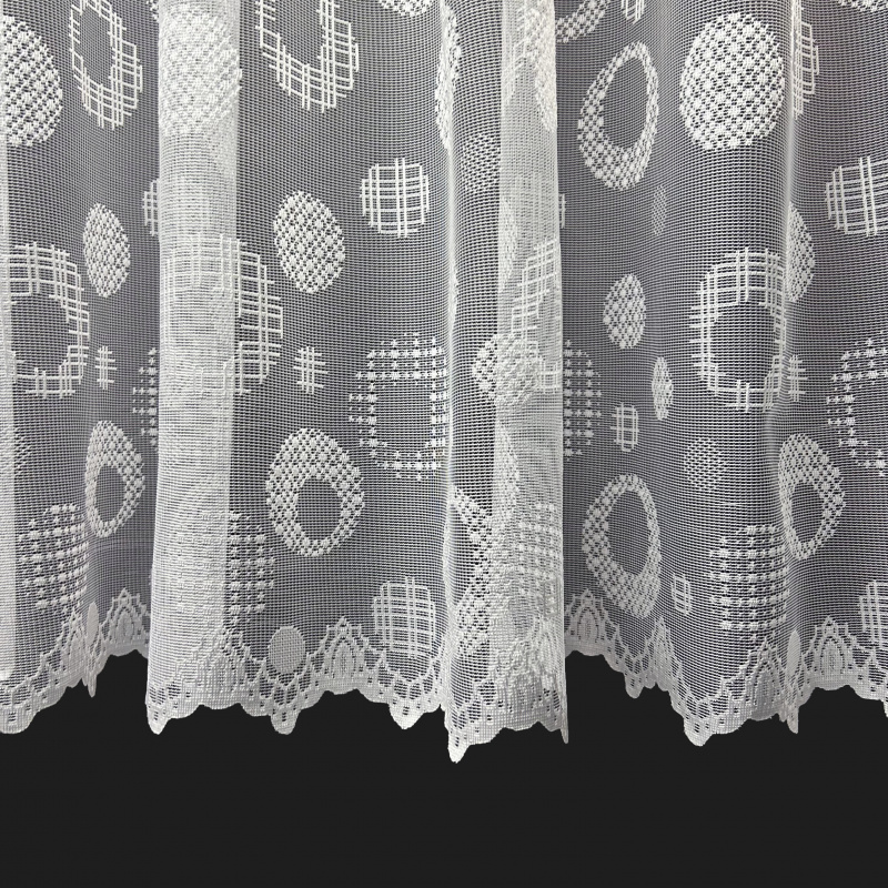 Žakárová záclona bílá 18B66, metráž, je vyrobena z kvalitního bílého žakárového materiálu s moderním vzorem kruhů a čtverců. Tento vzor s různými texturami a velikostmi dodává zácloně elegantní a současný vzhled. Záclona propouští dostatek přirozeného světla a zároveň poskytuje potřebnou úroveň soukromí, díky čemuž je ideální pro obývací pokoje, ložnice nebo kuchyně.