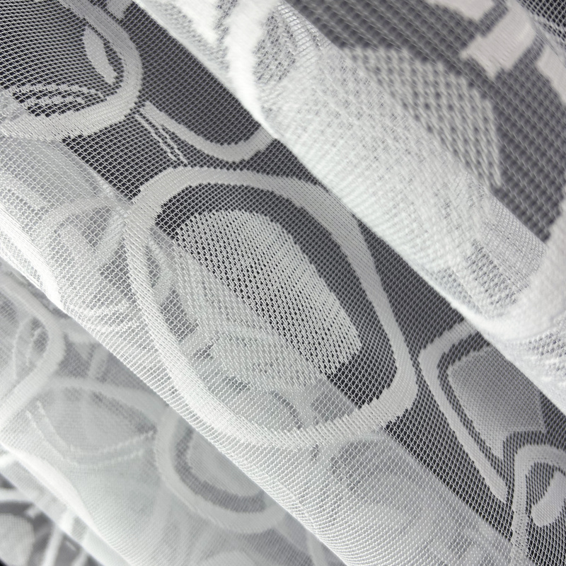 Žakárová záclona bílá 18F73, metráž, je vyrobena z kvalitního žakárového materiálu s moderním geometrickým vzorem, který přináší do vašeho domova elegantní a současný styl. Bílá barva dodává interiéru svěžest a světelnost, čímž prostor opticky zvětšuje a zlepšuje jeho estetiku. Záclona se vyznačuje jemnou strukturou a precizním provedením vzoru, což zajišťuje dlouhou životnost a snadnou údržbu. Tento produkt je ideální pro různé typy oken a interiérů, včetně obývacích pokojů, ložnic, kuchyní a kanceláří, kde přidá na stylu a světelnosti.