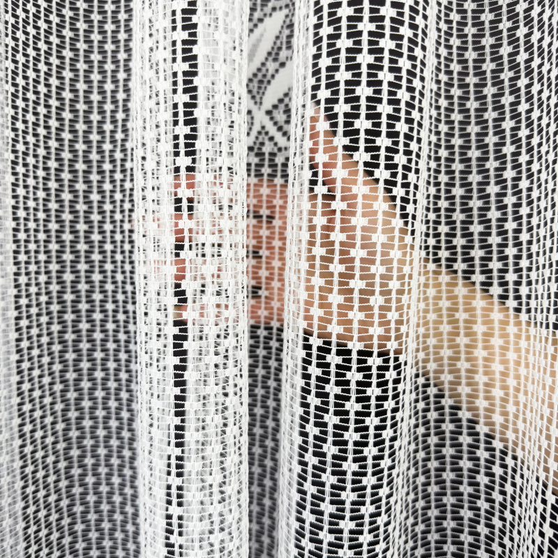 Ervi žakárová záclona v bílé barvě se vzorem.