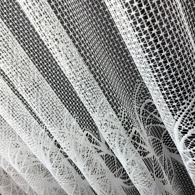 Žakárová záclona v bílé barvě se vzorem.