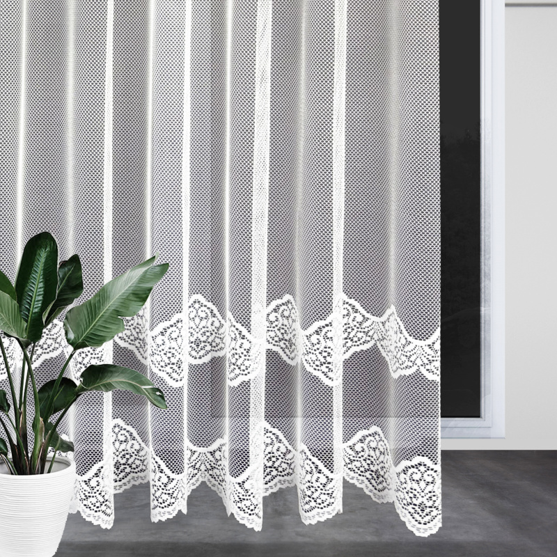 Ervi žakárová záclona v bílé barvě se vzorem.