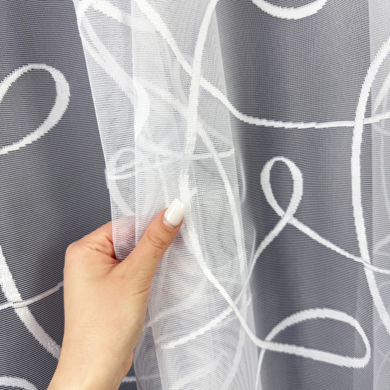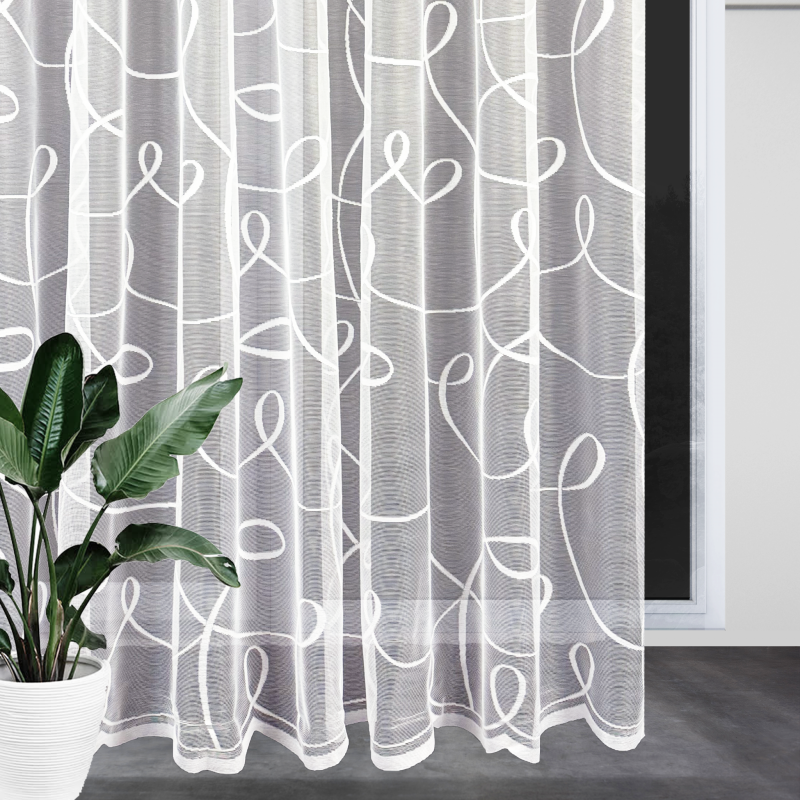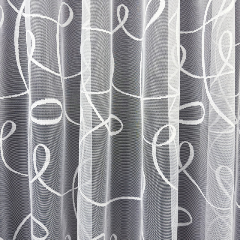 Žakárová záclona v bílé barvě se vzorem.