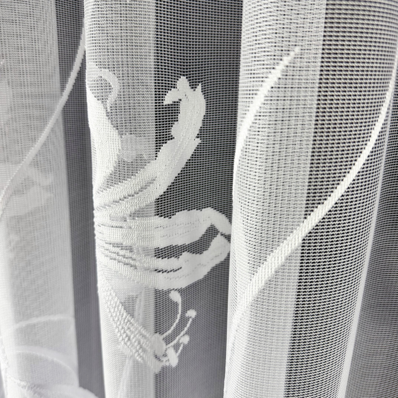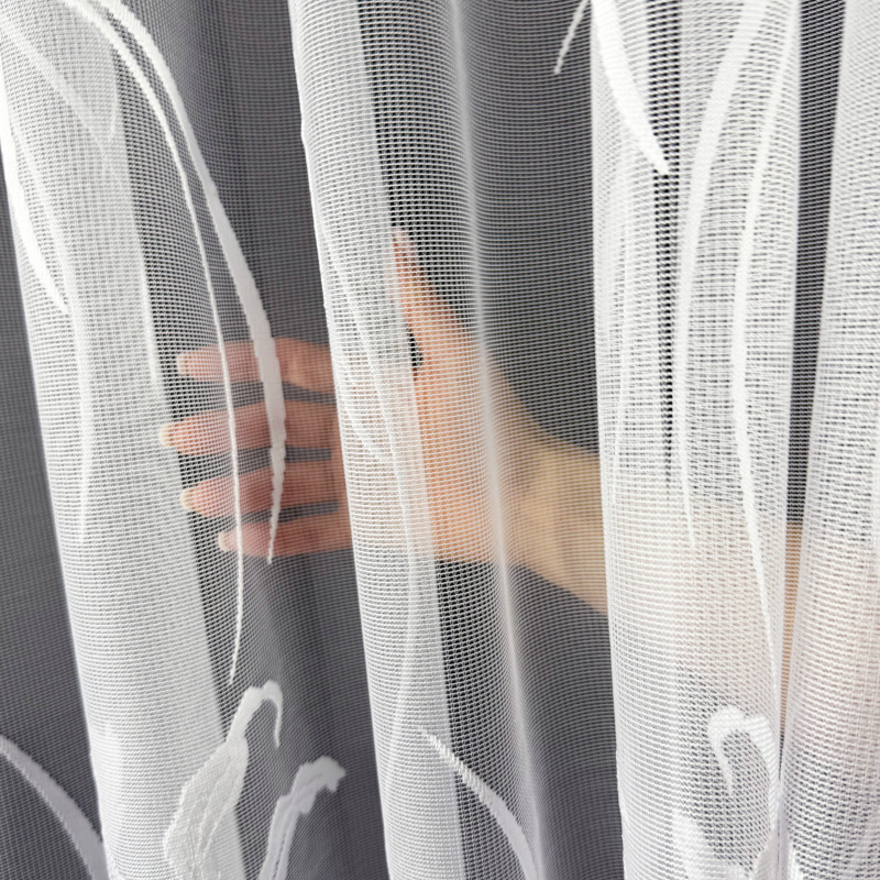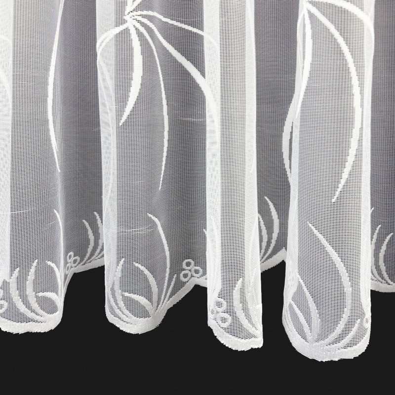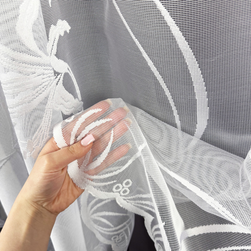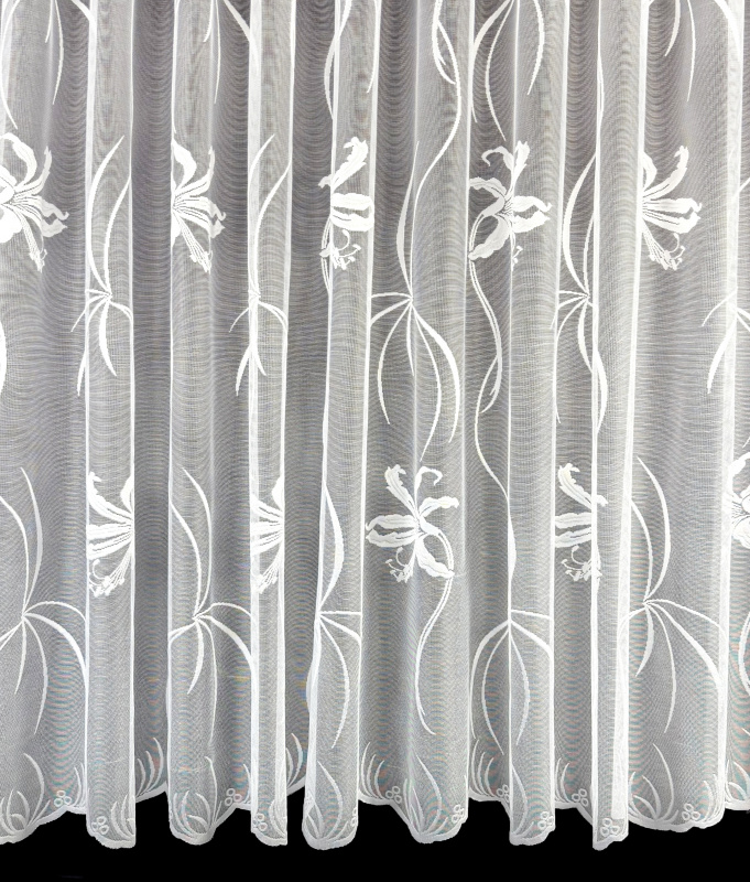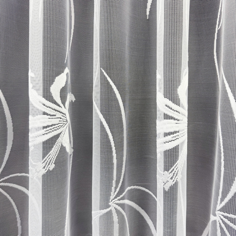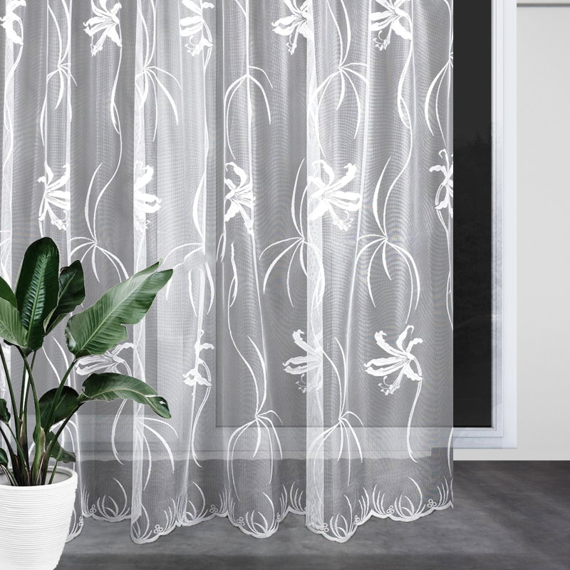 Žakárová záclona v bílé barvě se vzorem lilie.