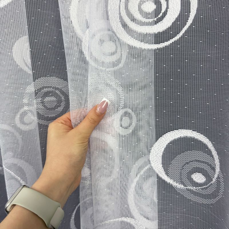 Ervi žakárová záclona v bílé barvě se vzorem.