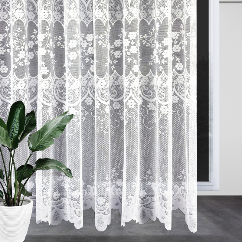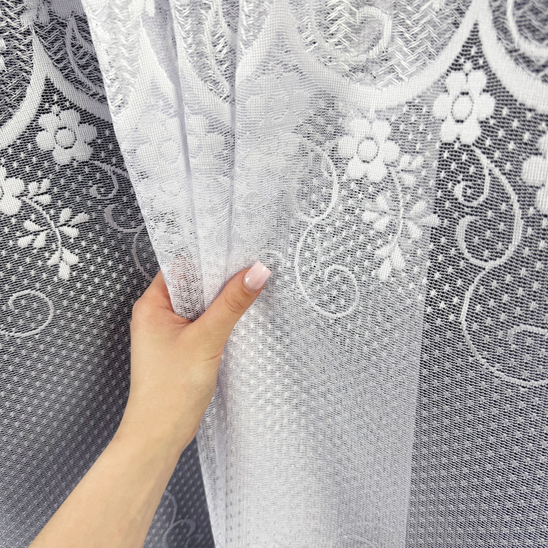 Ervi žakárová záclona v bílé barvě se vzorem.