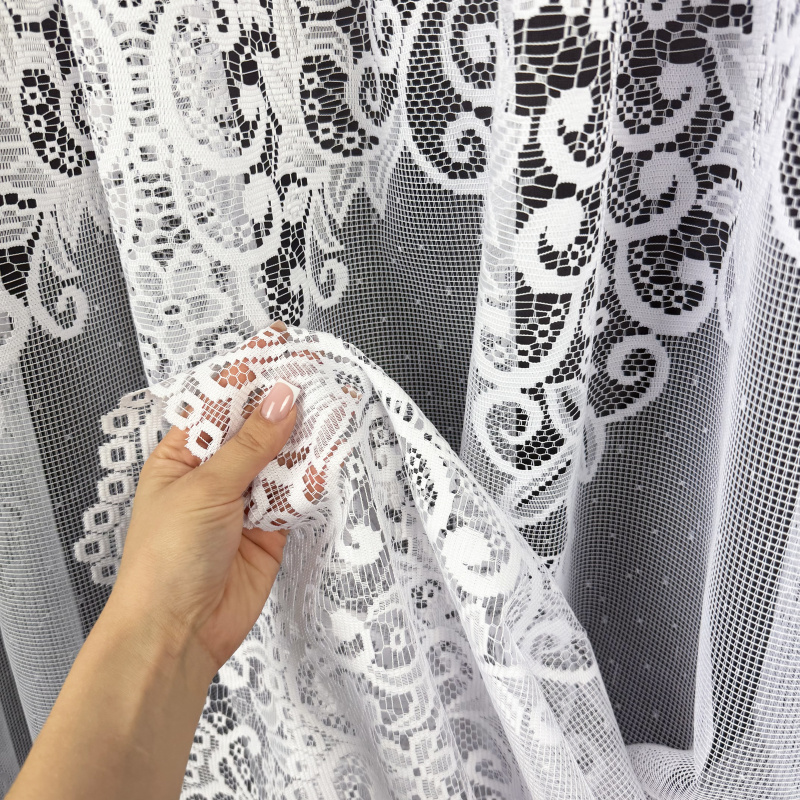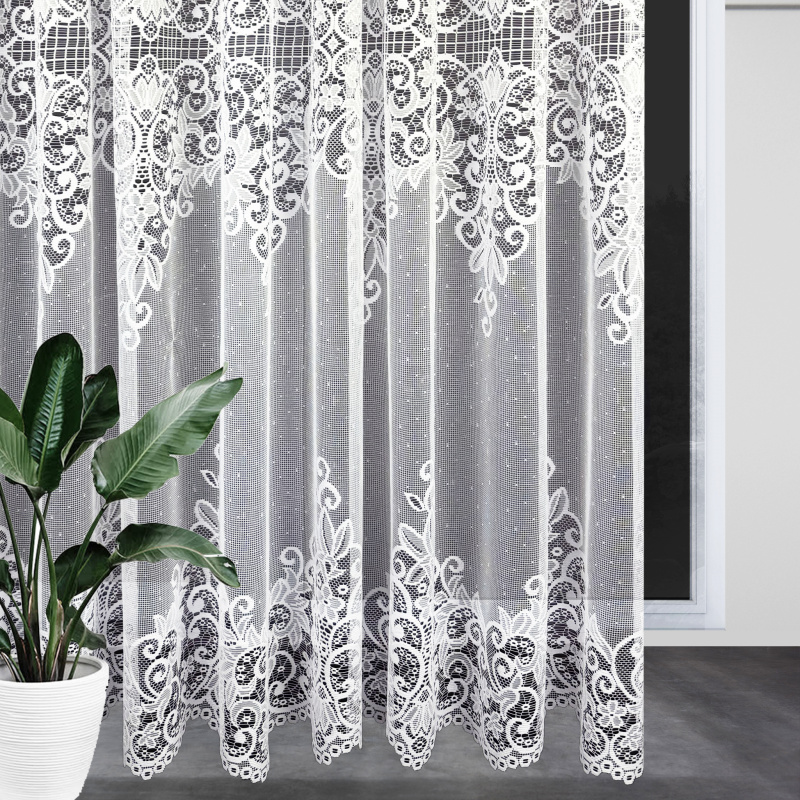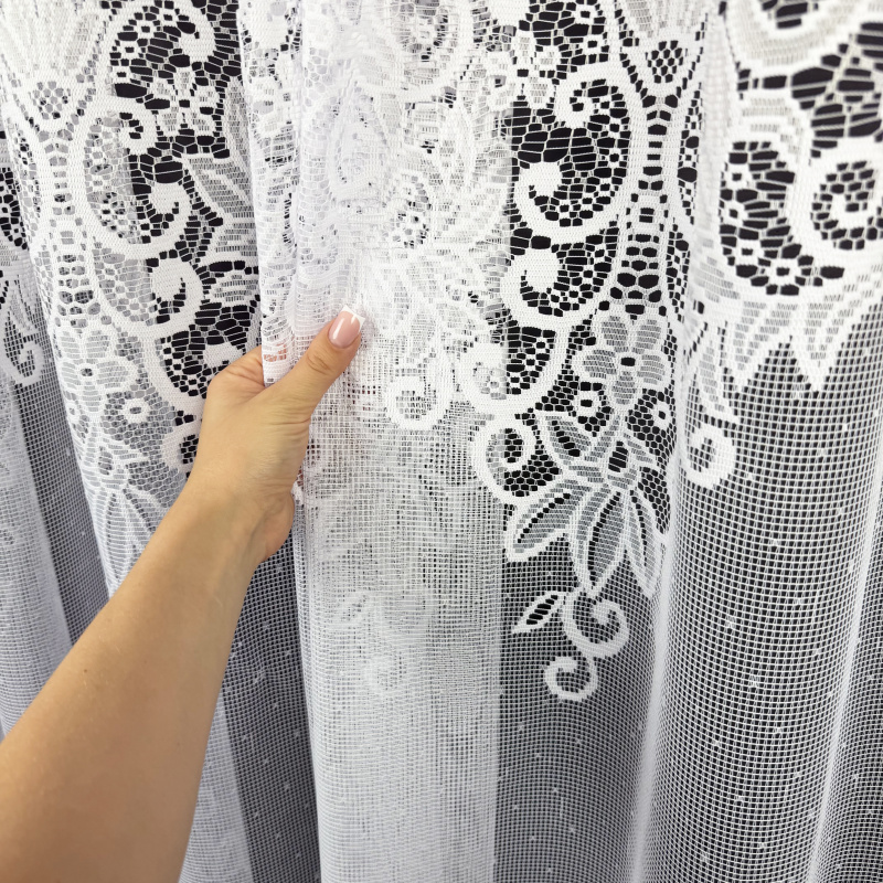 Ervi žakárová záclona v bílé barvě se vzorem.