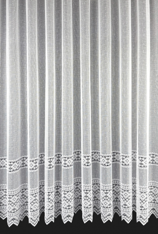 Ervi žakárová záclona v bílé barvě se vzorem.