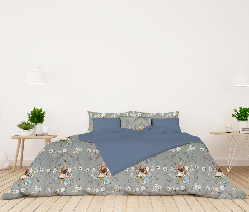 Ervi Zvýhodněná Sada Bavlněného DUO povlečení s Prostěradlem - Akvarel růže/modré