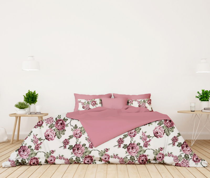 Zkrášlete svou ložnici touto elegantní a praktickou zvýhodněnou sadou bavlněného DUO povlečení s prostěradlem. Povlečení je ozdobeno krásnými růžovými květy na bílém podkladu, zatímco druhá strana je jednobarevná růžová, což vám umožní měnit vzhled dle vaší nálady. Sada obsahuje povlak na polštář, přikrývku a prostěradlo, které dodají vaší ložnici svěžest a jemnost.