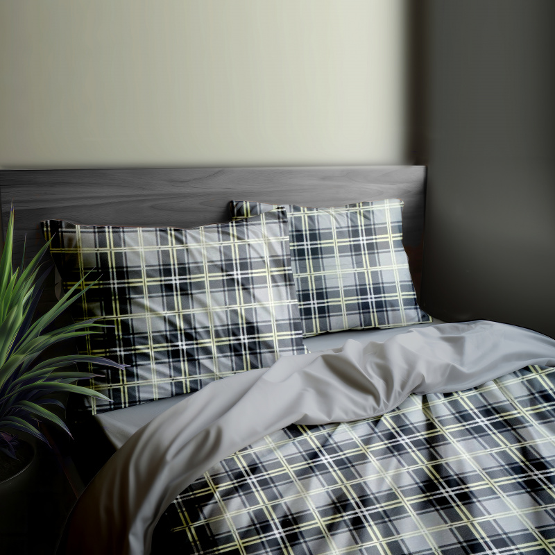 Ervi FLANELOVÉ bavlněné povlečení DUO - kostky černo-šedé/šedé