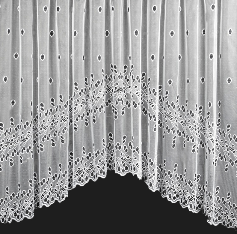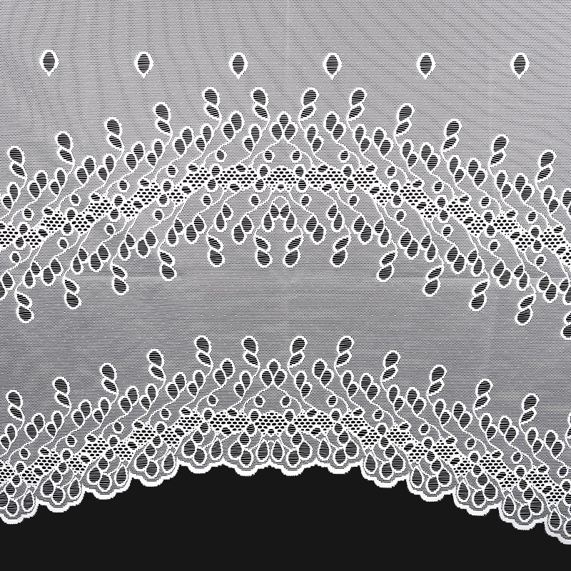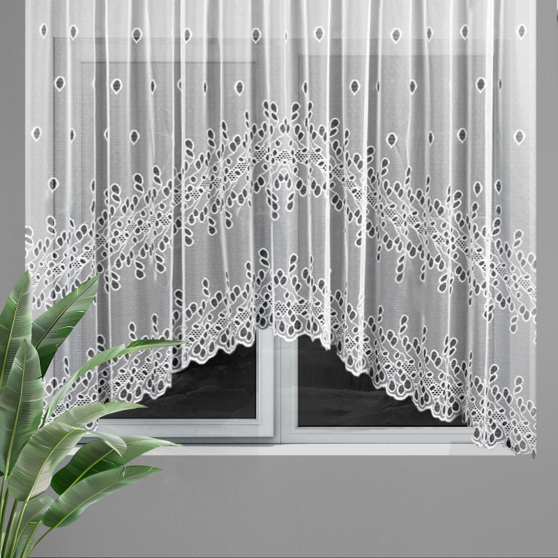 Oblouková hotová záclona s řasící páskou - 124060 je vyrobena z jemného bílého materiálu s elegantním obloukovým vzorem, který přináší do interiéru nadčasovou krásu. Záclona je zdobena drobnými kruhovými motivy a složitými detaily, které tvoří krásný a sofistikovaný design. Spodní okraj záclony je zakončen vlnitým lemem, který zvyšuje estetický dojem. Řasící páska umožňuje snadné zavěšení a úpravu záclony podle potřeby. Tento produkt je ideální pro přidání jemného a stylového prvku do jakéhokoli interiéru, ať už obývacího pokoje, ložnice, kuchyně nebo kanceláře. Záclona propouští dostatek světla, čímž vytváří příjemnou a světlou atmosféru v místnosti.