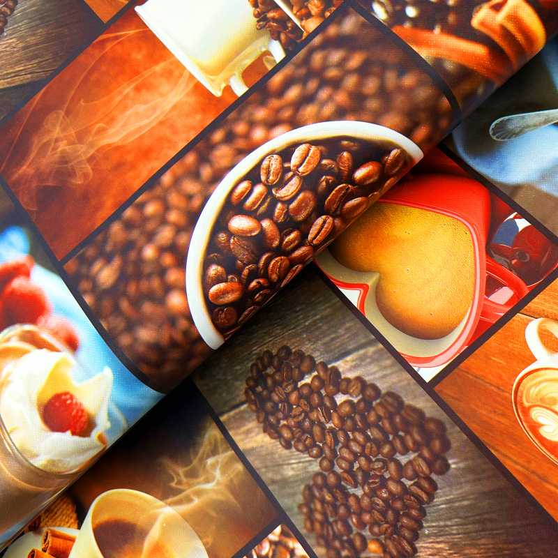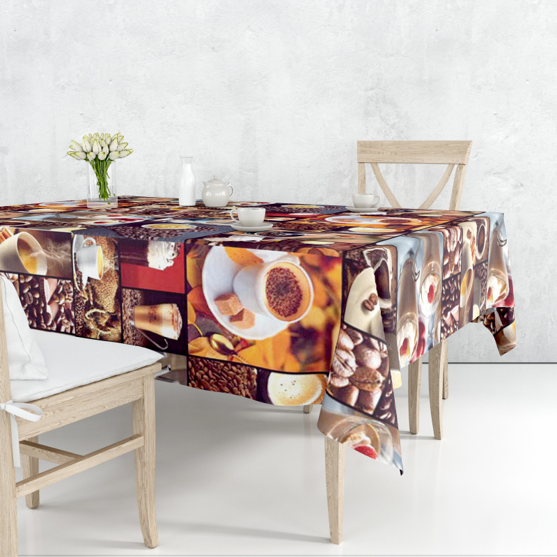 Omyvatelný PVC ubrus v šířce 140cm s kávovým vzorem.