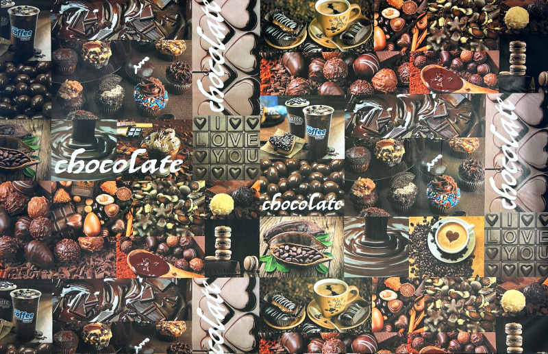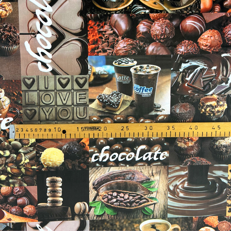 Omyvatelný PVC ubrus v šířce 140cm s motivem čokolády.