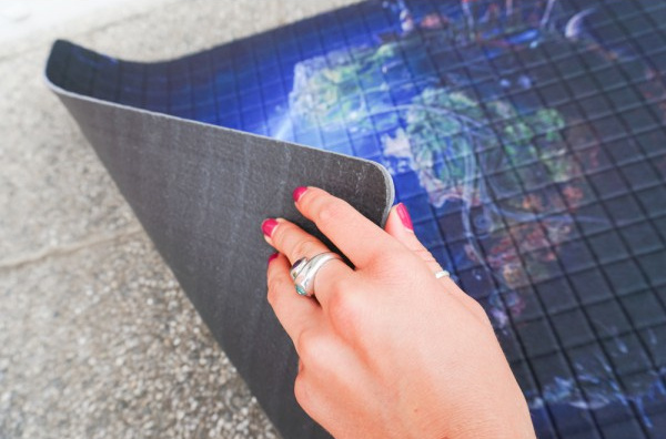 Multifunkční kobereček má protiskluzovou pogumovanou spodní vrstvu.