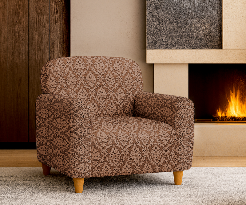 Napínací potah na křeslo Baroko- hnědý