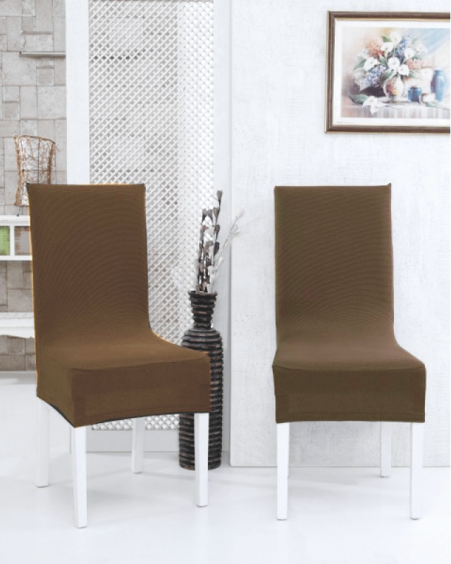 Napínací potah na židli s opěradlem - hnědý, 2 ks