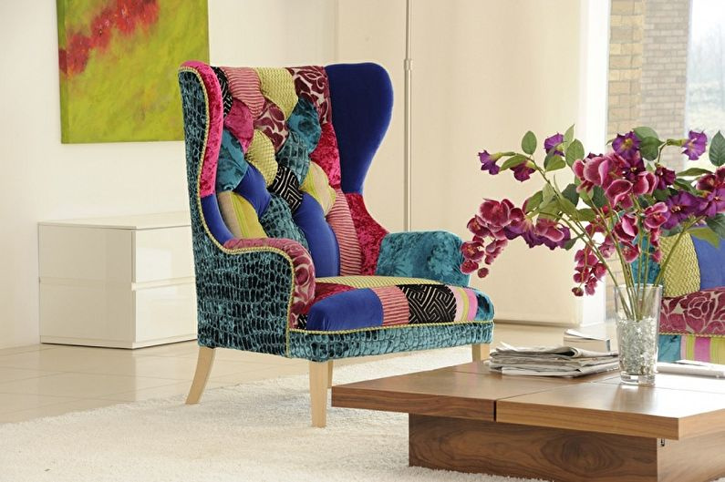 Sedačky a křesla, potažené nebo pokryté patchworkovým plátnem, zdůrazní jedinečnost každé části vašeho domova. Předměty ve stylu patchwork jsou velmi oblíbené u mnoha profesionálních dekoratérů. Není však nutné kupovat výrobky z exkluzivních kolekcí od výrobců. Originální ornament si můžete vytvořit sami.