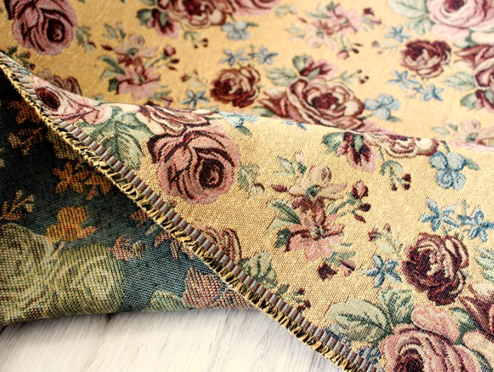 Tato dekorační/potahová gobelínová látka Gold plus v hořčicově žluté barvě je zdobena bohatým květinovým vzorem. Na látce jsou vyobrazeny růže a další květiny v odstínech růžové, červené, modré a zelené barvy, což vytváří elegantní a klasický vzhled. Vzor je detailní a bohatý, což činí látku ideální pro dekorativní účely nebo jako potahový materiál na nábytek. Tato látka je vyrobena z kvalitních materiálů, což zajišťuje její dlouhou životnost a odolnost vůči opotřebení. Perfektně se hodí na výrobu polštářů, přehozů, závěsů a čalounění různých druhů nábytku, jako jsou křesla, pohovky nebo židle.