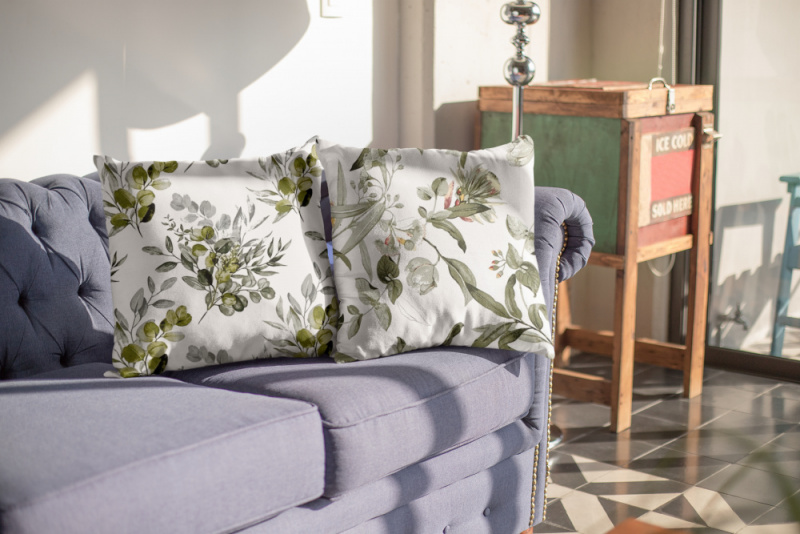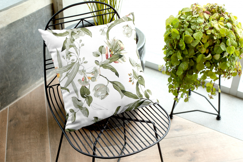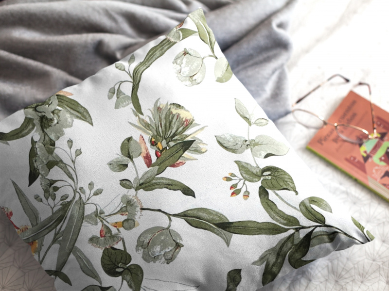 Ervi povlak na polštář bavlněný - kvetoucí eukalyptus zelený