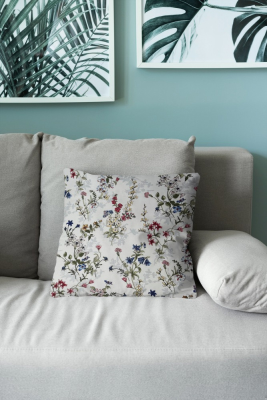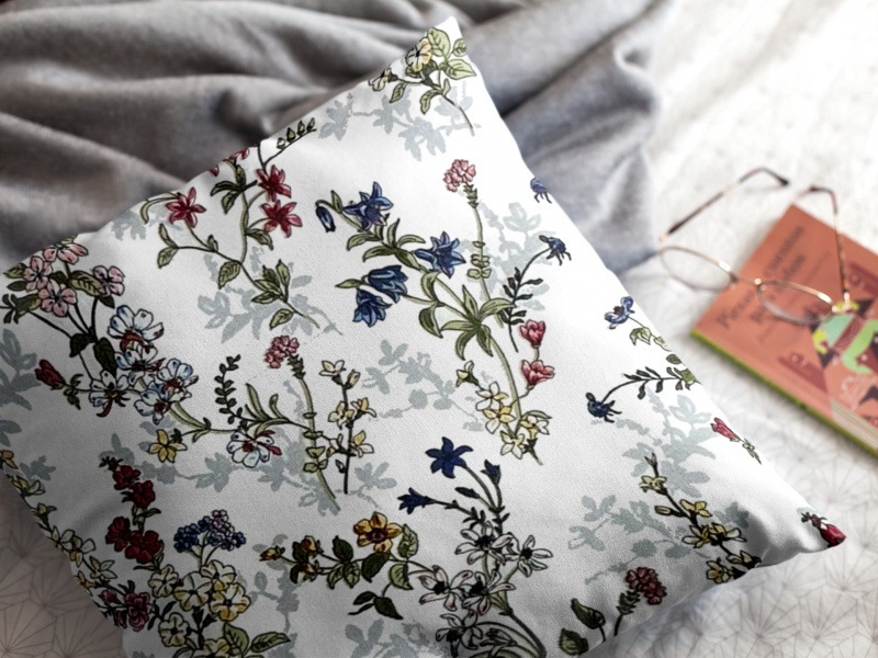 Ervi povlak na polštář Bavlněný - malované luční květiny na bílém 2